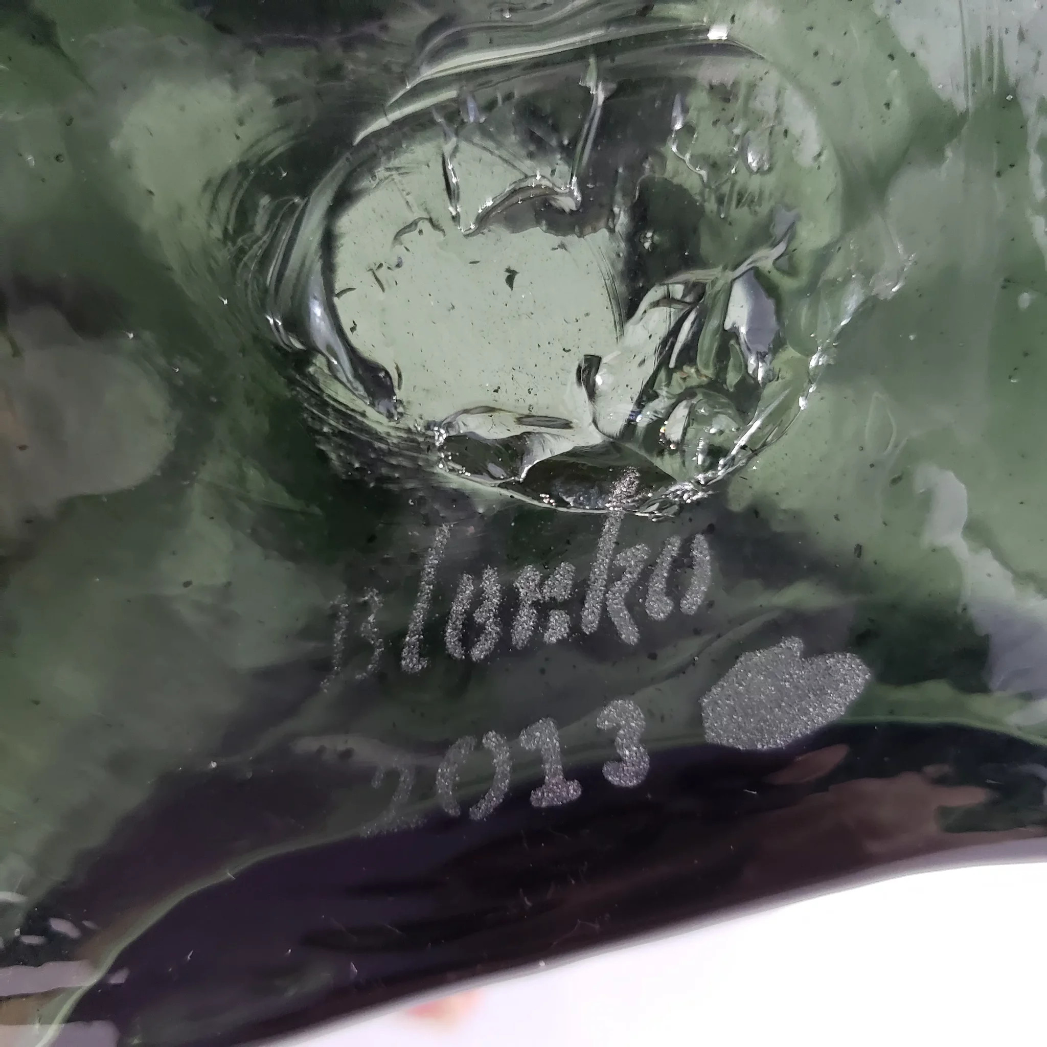 Blenko Joel Myers Avocado Green Pinwheel Water Bottle