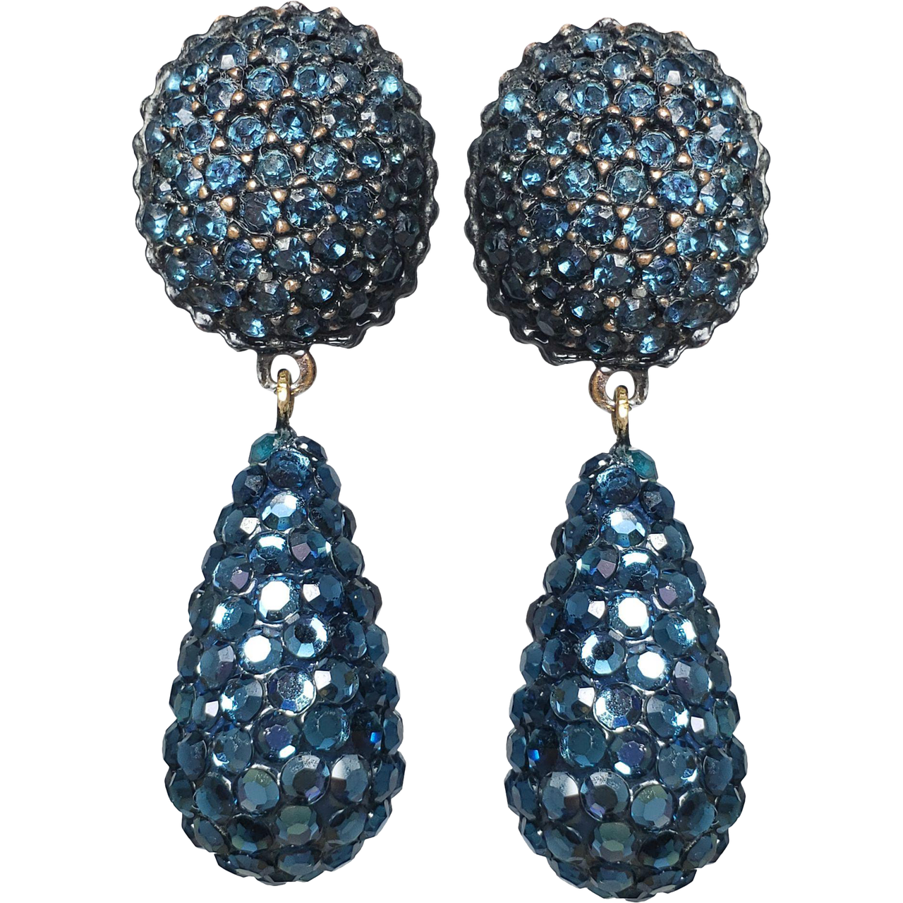 Lovely vintage 1960s dangling clip-on earrings. Very playful design with crystal beads in transparent blue color.
